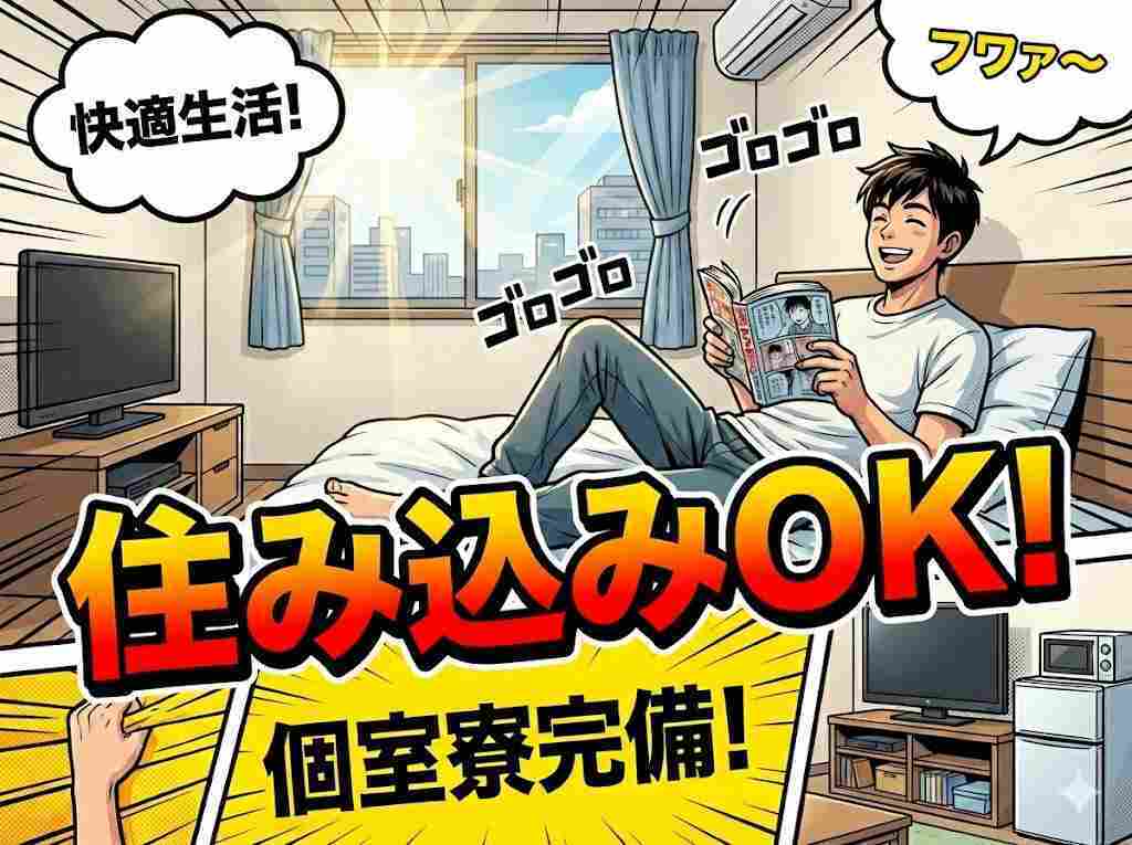 寮が用意されており、条件が合えばすぐに入寮できる環境です。住まいを探す手間を減らしながら仕事を始められるため、早めに働きたい方や新しい環境で生活をスタートしたい方にも向いています。仕事と住まいを同時に整えられる点も魅力です。